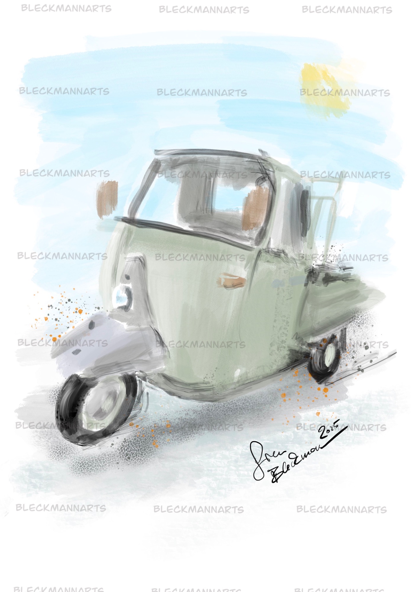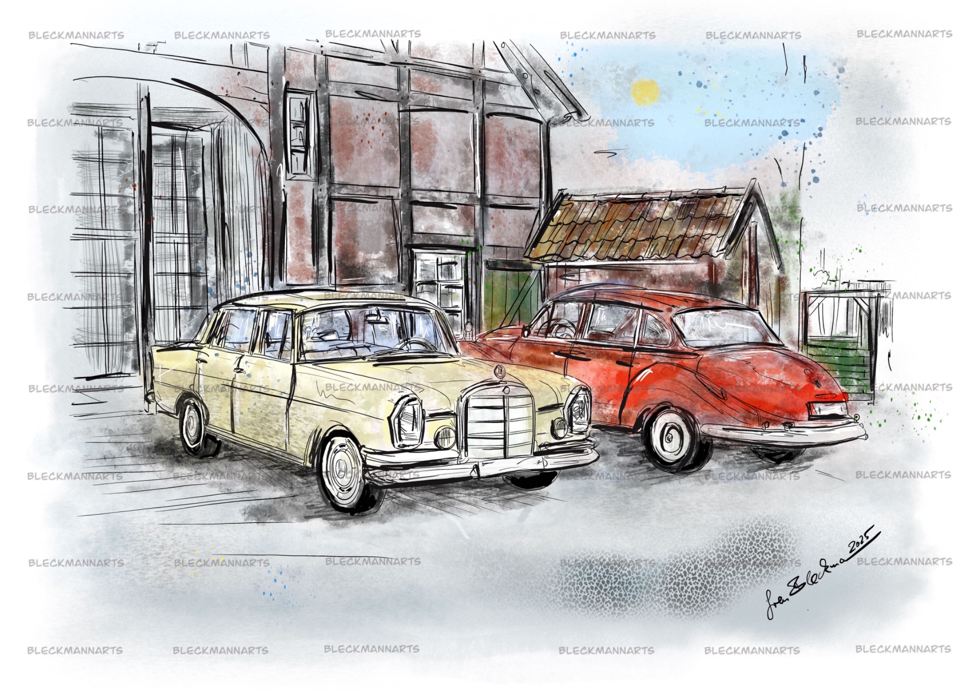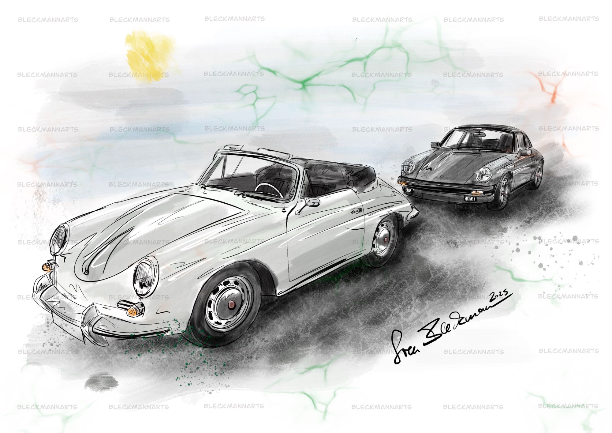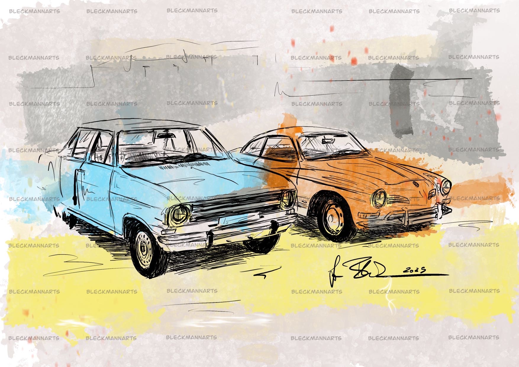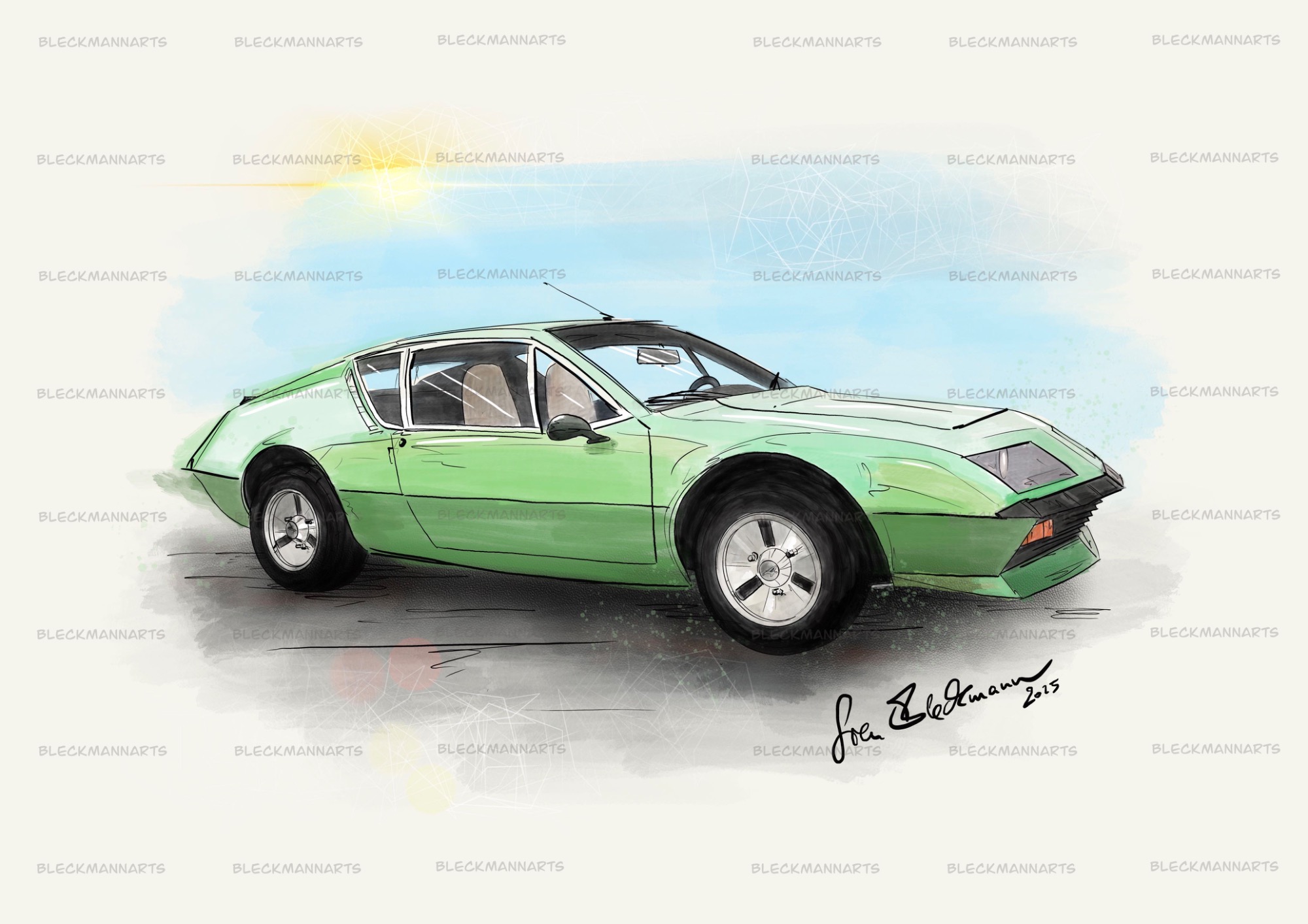 Sie können meine Benzinkunst bei Etsy erwerben. Außerdem male/zeichne ich Ihr Wunschauto, gerne auch in diesem Stil.