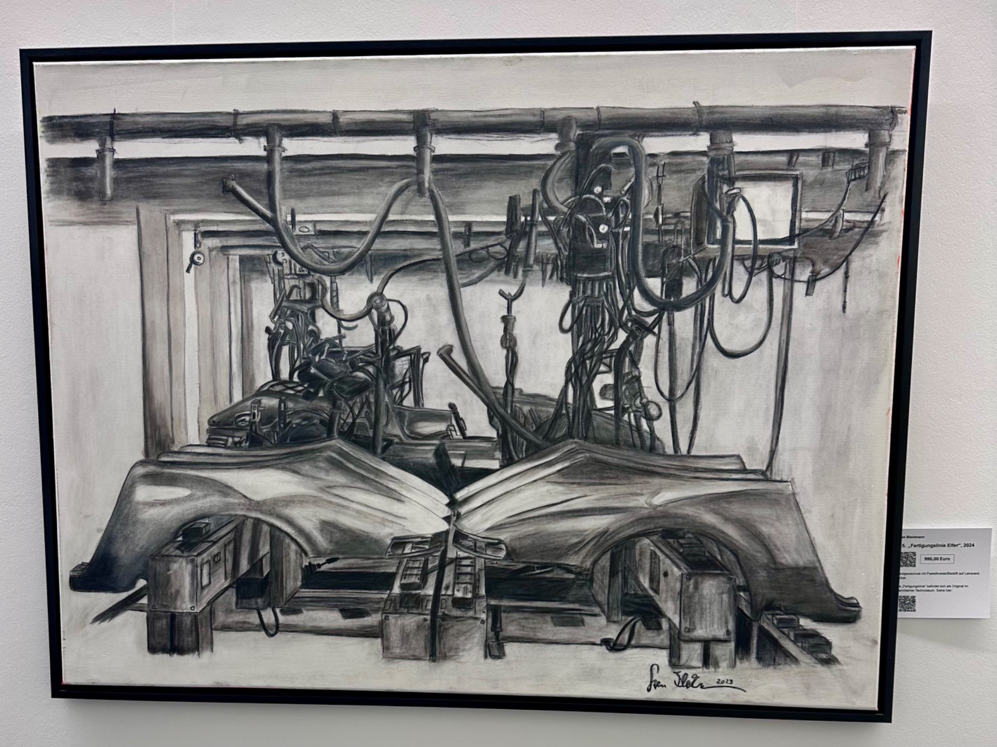 Bleistift, Kohle, Pastellkreide auf Leinwand (100x80cm). Mit schwarzem Schattenfugenrahmen, Holz. Konserviert. Preis auf Anfrage.