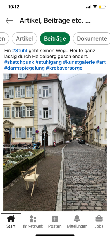 Bei Interesse an meinen „Stuhlgang“-Bildern oder dem Stuhl selbst (Unikat) für Ihre Ausstellung, o.ä., nehmen Sie bitte gerne Kontakt zu mir auf oder gehen Sie auf meine Landing Page.