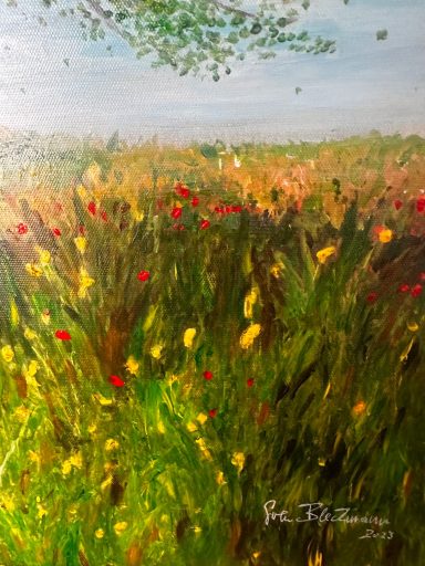 Herrlich impressionistische Malerei in den buntesten Farben. Macht einfach nur gute Laune. 75x100x5cm Akryl auf Leinwand.