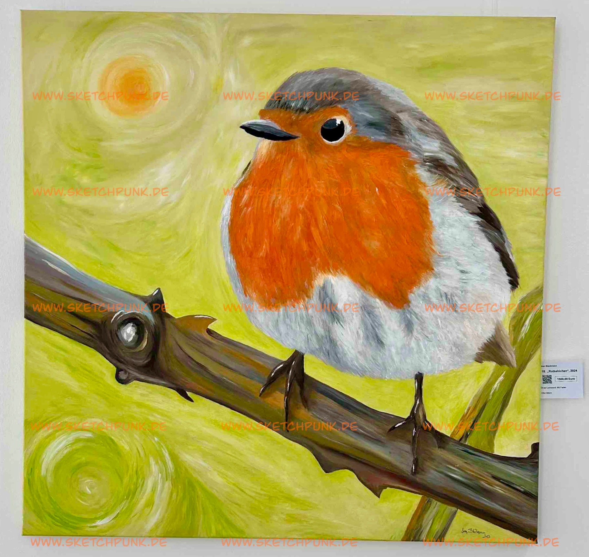 Robin’s Feather – Ölgemälde mit echter Feder | Einzigartige Wandkunst, 100x100cm Leinwand